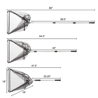 - EXTENDABLE TELESCOPING HANDLE- With a telescoping handle, this landing net is adjustable to multiple lengths (47.5-in, 64.5-in, 80-in), The ergonomic handle also adds ideal balance and grip when sporting for catch-and-release fish
