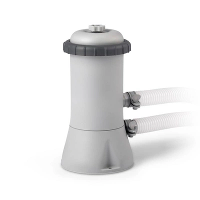 Cool, refreshing and simple to set up, this Intex Easy Set Pool will be a hit with the entire family! This Easy Set pool sets up quickly and easily, and you won’t need any tools. All you need is a level space outside to put it. It’s as easy as inflating the top ring, set in place and watch the pool rise as it fills with water. Water capacity (filled at 80% of wall height): approximately 639 gallons. Get ready for the water in as little as 10 minutes!Just relax in your pool, and let the Intex 530 GPH Filter Pump take care of the filtration. This cartridge filter pump is the best little work horse you’ll find to keep your pool sparking clean. Designed for all 8′, 10′ and 12′ Intex Above Ground Pools, it’s also great for Sand n Sun, Aqua Leisure and other pools with 1.25″ diameter hose connections. The filter includes everything needed for set up; 2 hoses, one Type A filter cartridge, four hose clamps, one inlet strainer, and one output strainer. The Intex Filter Pump is double insulated for safety and a long lasting life for many summer days of fun.The GFCI (ground fault circuit interrupter) feature on the 530 GPH pump provides additional safety and protection. Your pump will shut off automatically if the electrical current is exposed to water. Please note, the previous Intex model 58603E does not include this additional feature.One Year Intex Manufacturer Warranty