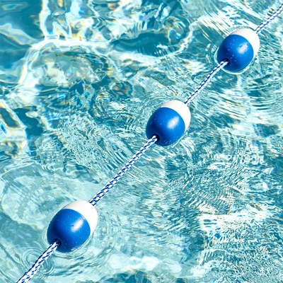 The Kokido 20-Foot Rope and Buoy Float Kit is a safety float line for your pool. It can be used to mark off the deep end or restricted area of the pool or as a lane divide for swimming laps in your pool. his kit includes a rope 20 feet long, 9 small white and blue buoy floats, and 2 solid zinc alloy rope hooks. The rope length is adjustable to allow it to work with most pools all the way up to 20 feet wide.